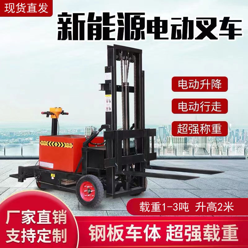 临泽县小型电动叉车1吨站驾式2吨液压升高铲车全自动仓储堆高车